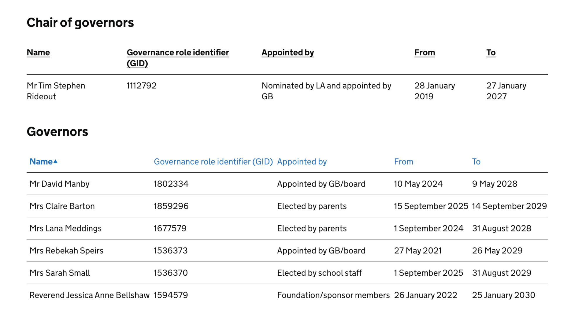 | Parent Governor | Mrs Claire Barton |