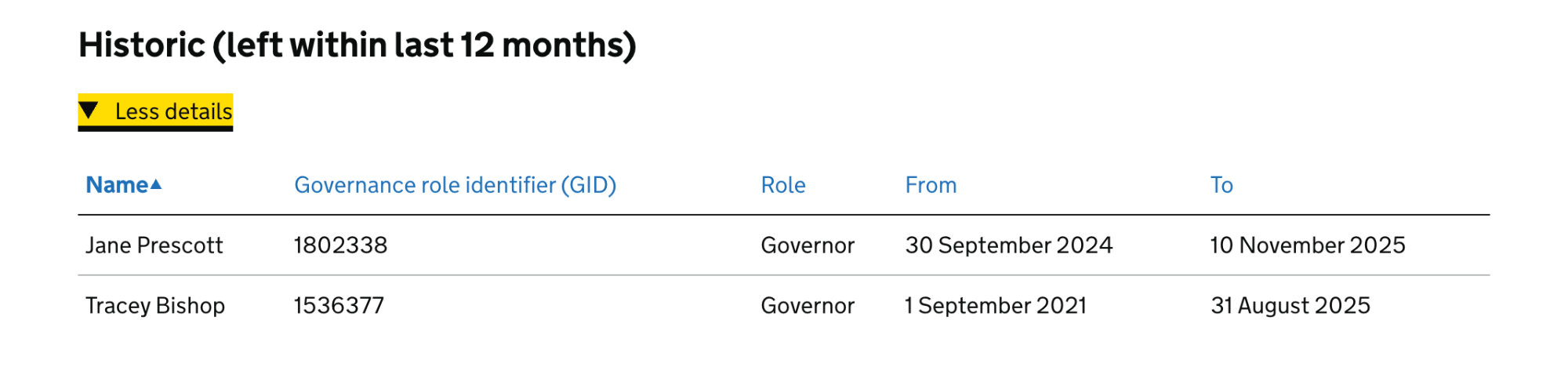 | Clerk to Governor | Mrs Tracey Limbert |