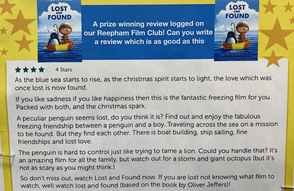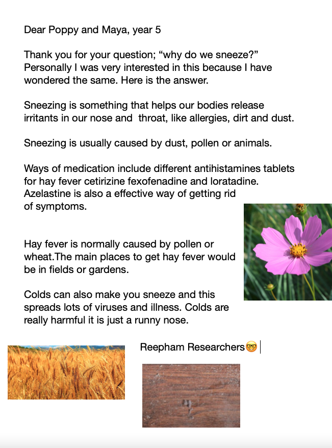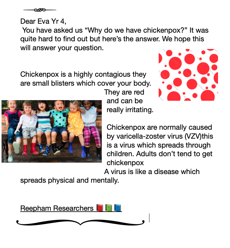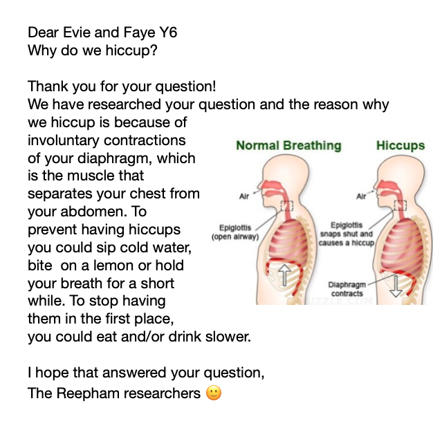 On a Monday our Reepham Researchers meet at lunch and write up different things you can read here, these include Film Reviews, Collective Worship updates and answering questions other children put in our 'Question Book'.